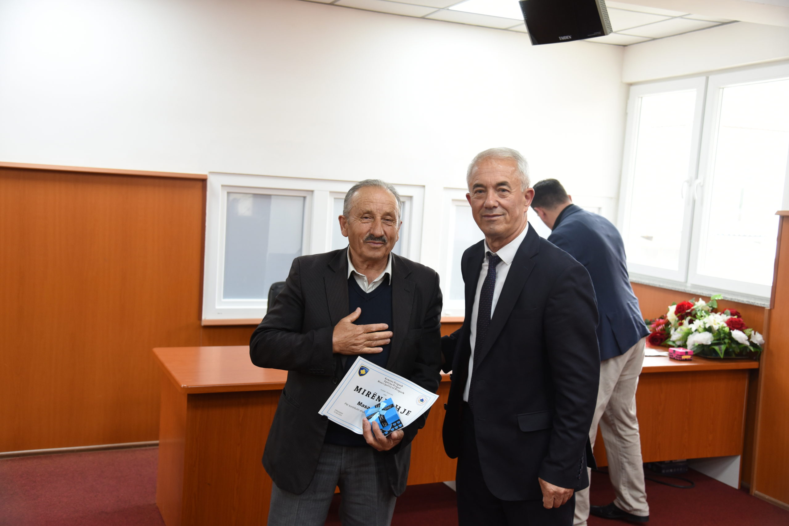 Kryetari i komunës shprehu një vlerësim të madh për të pranishmit për kontributin e tyre, veçanërisht në kohët më të vështira, të cilët kontribuan në edukimin, arsimimin dhe shëndetin e qytetarëve.