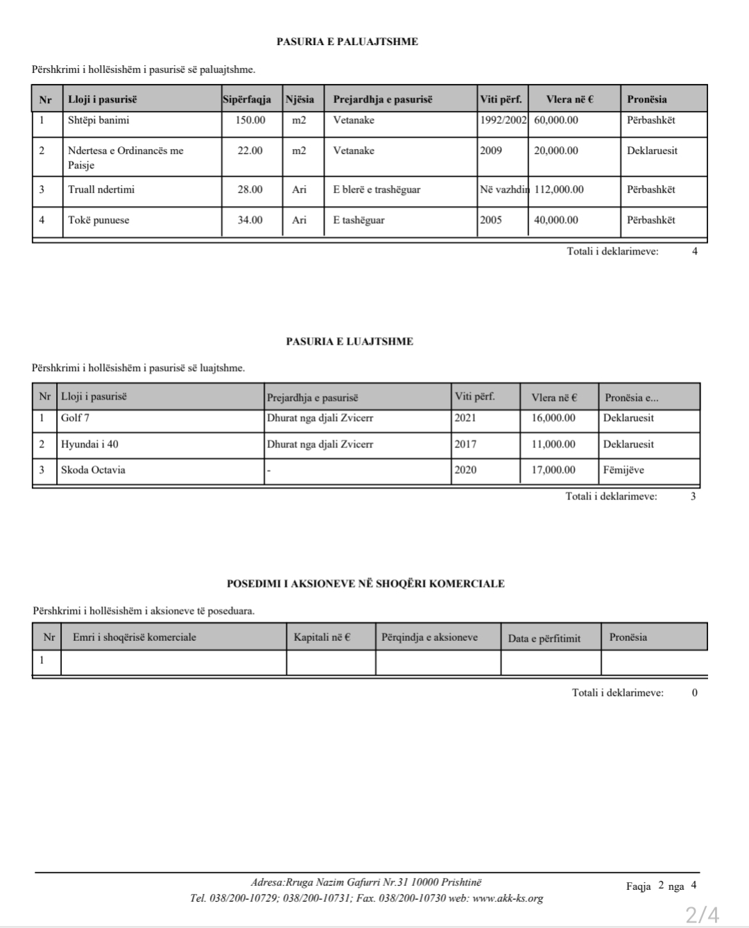 Më poshtë mund të gjeni linkun e plotë të zyrtarëve të Dragashit që kanë bërë deklarimit e pasurisë në AKK.