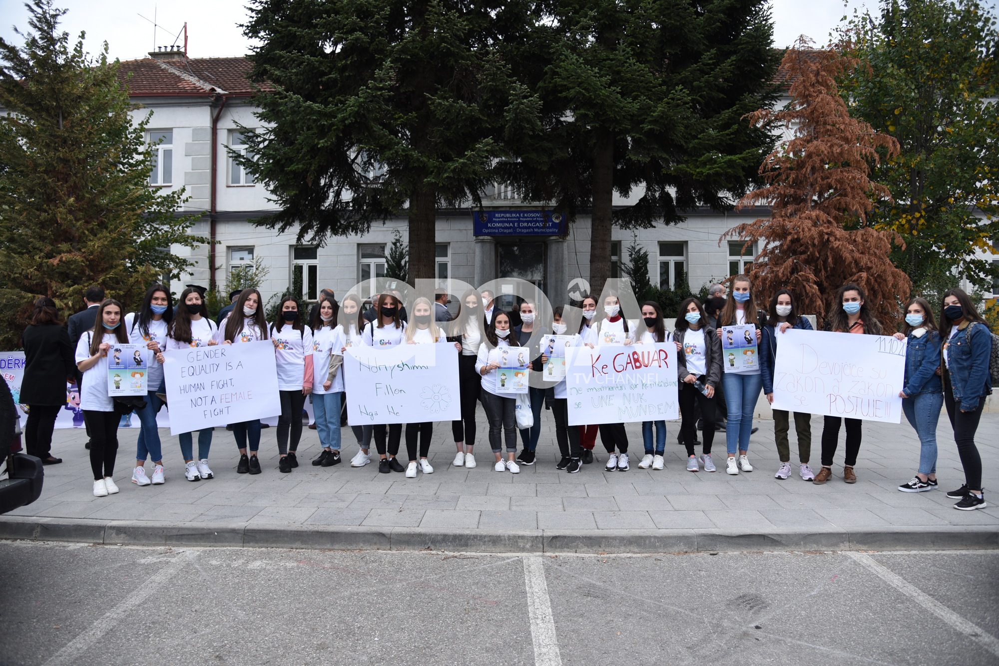 Po ashtu para objektit të Komunës, të shoqërua nga përfaqësues institucional dhe në pranin e mediave, u shpalos baneri me mbishkrim “Unë mundem” dhe “Vajzat munden”, baner i cili simbolizon se vajzat mund të zgjedhin profesione si police, sportiste, biznesmene të suksesshme, zjarrfikëse, ushtare, shkencëtare, mjeke etj., profesione këto të cilat për fat të keq ende janë tabu nga vajzat/gratë tona.